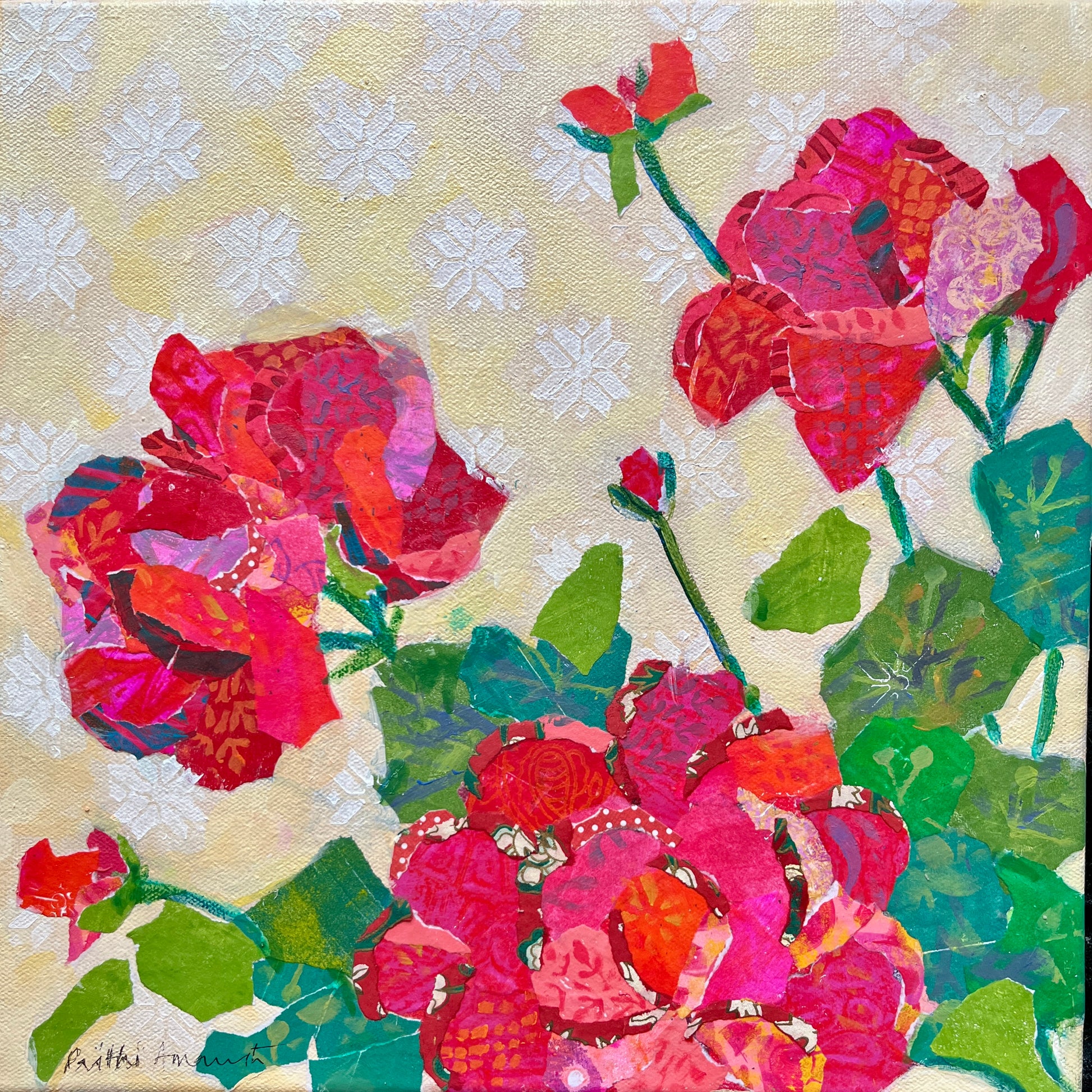 Hand painted paper collage on stretched canvas
