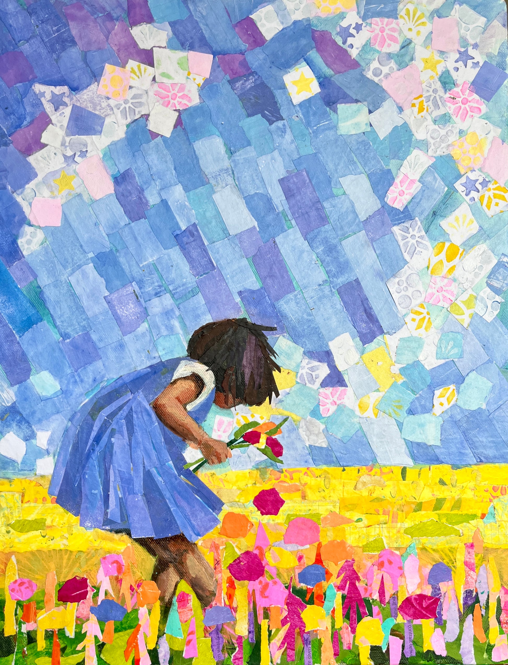 Hand painted paper collage on stretched canvas